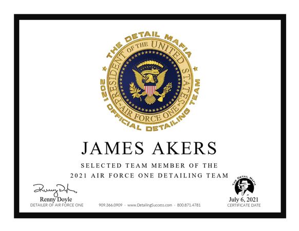 Air Force One 2021, 2022 & 2023 Detailing Team